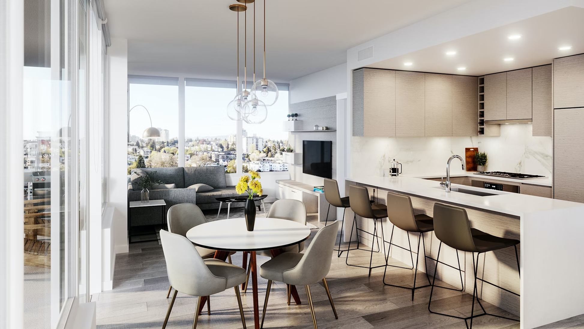 Welcome to Ovation a striking 32 tower in the heart of New Westminster! Crowning the tower for the entire expanse of the 32nd storey floor is a full-floor, indoor and outdoor amenity level: Stage 8 Sky Club. Stage 8 Sky Clube has sweeping views of the city and water while relaxing on the rooftop terrace, green activity space, firepit, outdoor hot tub and more! This 1 bed home features a huge 111sqft patio, wide plank flooring, VRF heating and cooling, gourmet kitchen with Blomberg & Bosch appliances, and spa inspired bathrooms. One parking and one storage included!